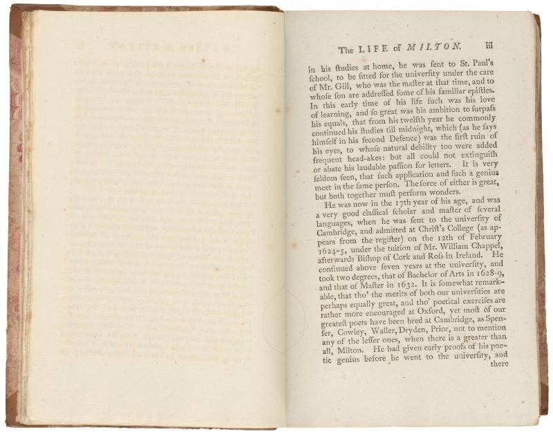 029. PML 966, Vol. 1, part 1, Leaf bound in following Life of Milton, p. ii, verso–The life of Milton, p. iii
