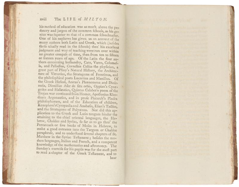 044. PML 966, Vol. 1, part 1, The life of Milton, p. xviii–Leaf bound in following Life of Milton, p. 18, recto