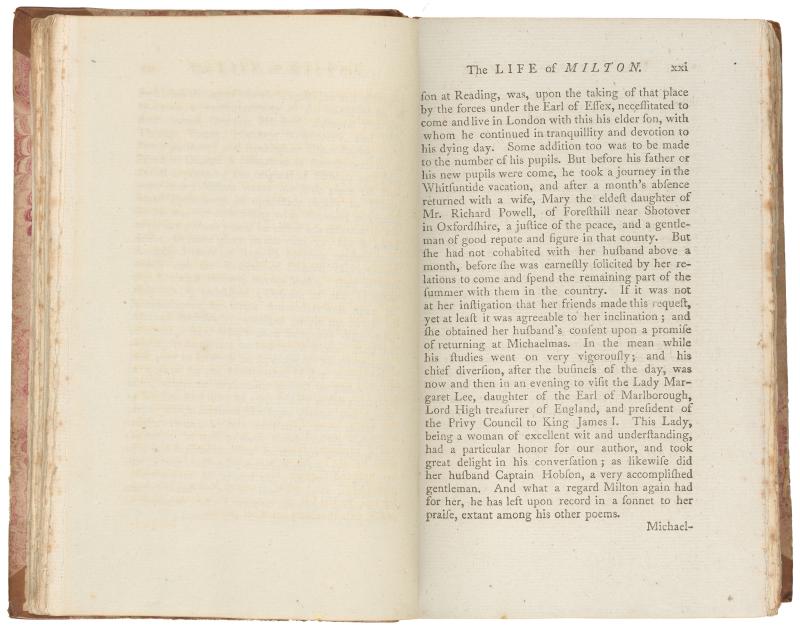047. PML 966, Vol. 1, part 1, Leaf bound in following Life of Milton, p. 20, verso–The life of Milton, p. xxi