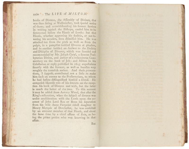 050. PML 966, Vol. 1, part 1, The life of Milton, p. xxiv–Leaf bound in following Life of Milton, p. 24, recto
