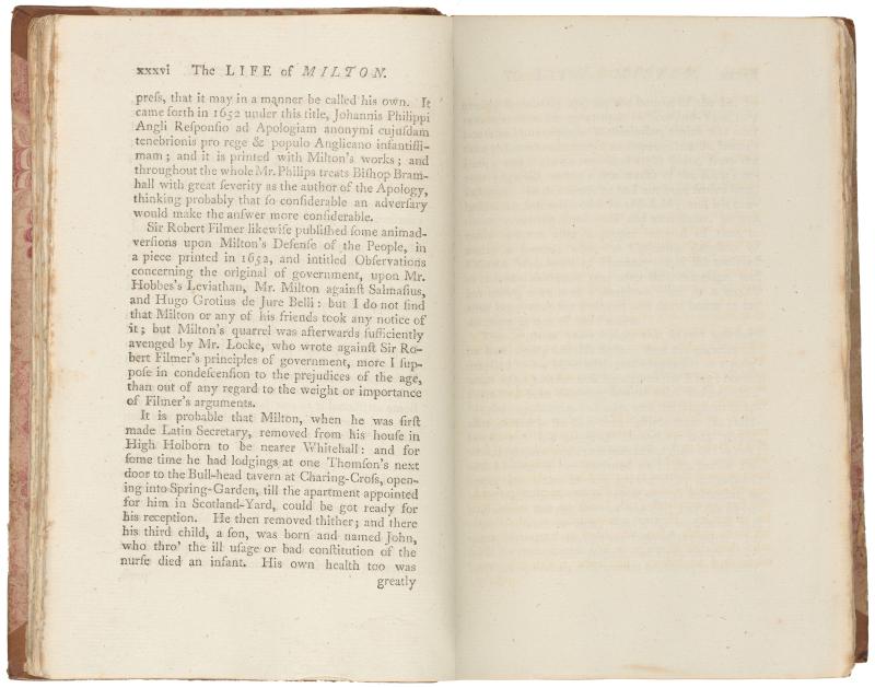062. PML 966, Vol. 1, part 1, The life of Milton, p. xxxvi–Leaf bound in following Life of Milton, p. 36, recto