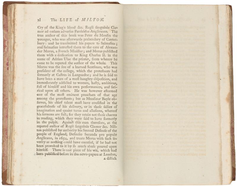 066. PML 966, Vol. 1, part 1, The life of Milton, p. xl–Leaf bound in following Life of Milton, p. 40, recto