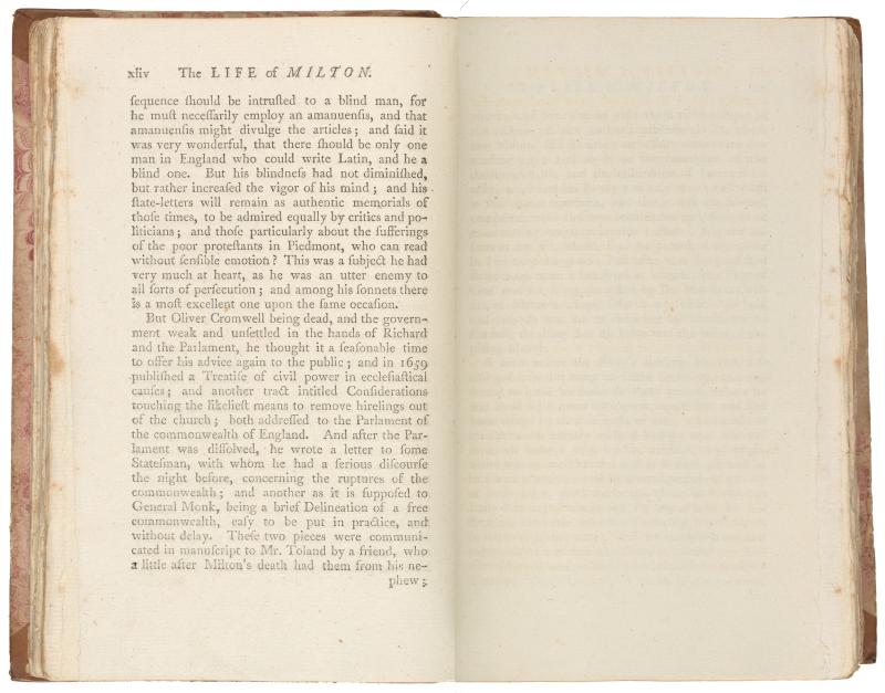070. PML 966, Vol. 1, part 1, The life of Milton, p. xliv–Leaf bound in following Life of Milton, p. 44, recto