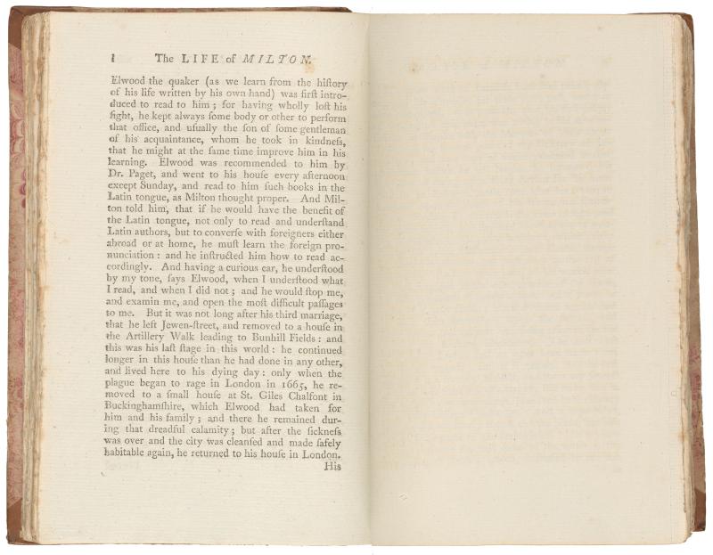 076. PML 966, Vol. 1, part 1, The life of Milton, p. l–Leaf bound in following Life of Milton, p. 50, recto