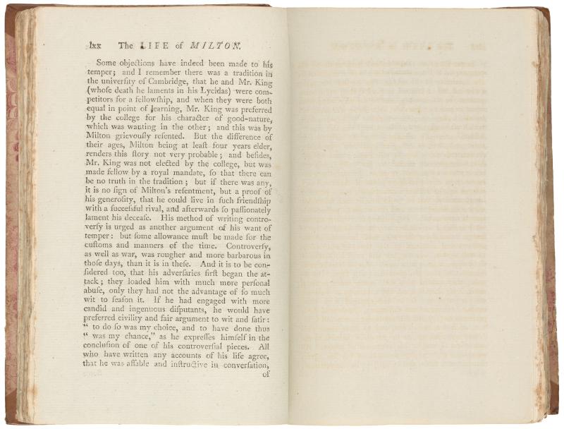 096. PML 966, Vol. 1, part 1, The life of Milton, p. lxx–Leaf bound in following Life of Milton, p. 70, recto