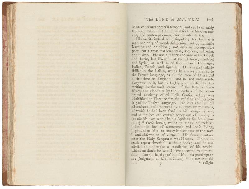 097. PML 966, Vol. 1, part 1, Leaf bound in following Life of Milton, p. 70, verso–The life of Milton, p. lxx