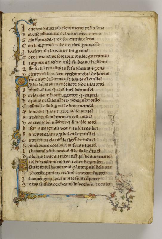 Decoration: 22 miniatures, numerous illuminated initials with marginal extenders, and marginal figures (pen drawings with color washes).