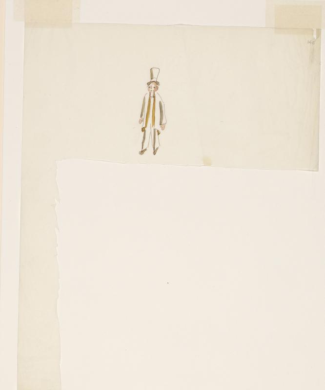 Personnage en costume, portant un chapeau haut-de-forme