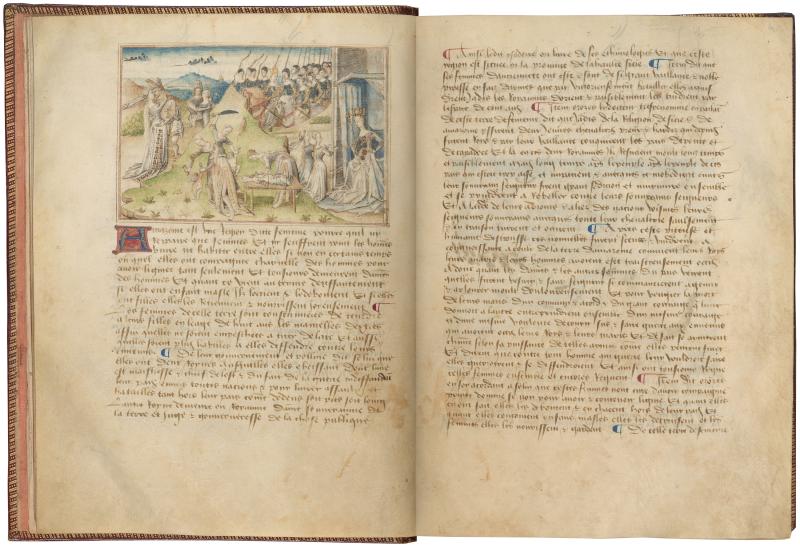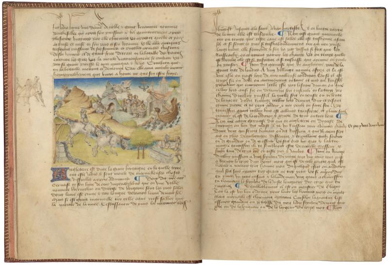 This manuscript contains numerous images of the real and imaginary lands that made up the medieval world. The miniatures are arranged alphabetically and typically focus on the various peoples, exotic costumes, unusual customs, and fantastic creatures of a particular region. Clearly intended to inspire marveling, the depictions are not terrifying or indicative of sin or disaster. Rather, they are designed for and from a Western perspective that considered distant lands and their inhabitants as strange, exotic, and captivating.