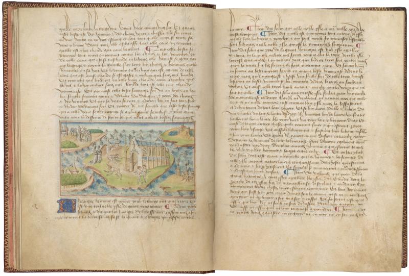 Like the first image of Britain in this manuscript, the scene here depicts a strange place filled with men who paint their bodies in many colors and women who paint themselves black so as to travel incognito.