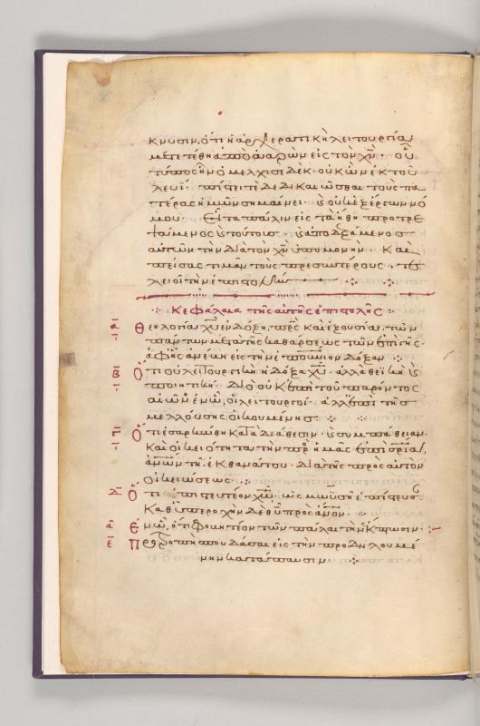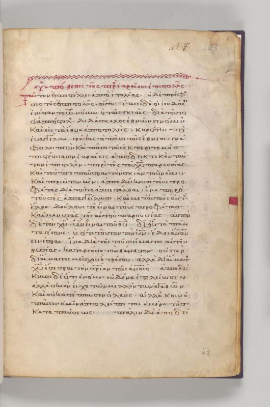 New Testament fragment (Hebrews and Revelation), in Greek; Greece, twelfth century, with slight calligraphic ornamentation in red and black (fols. 1, 19, 19v). Gift of Herman C. Hoskier, 1926.