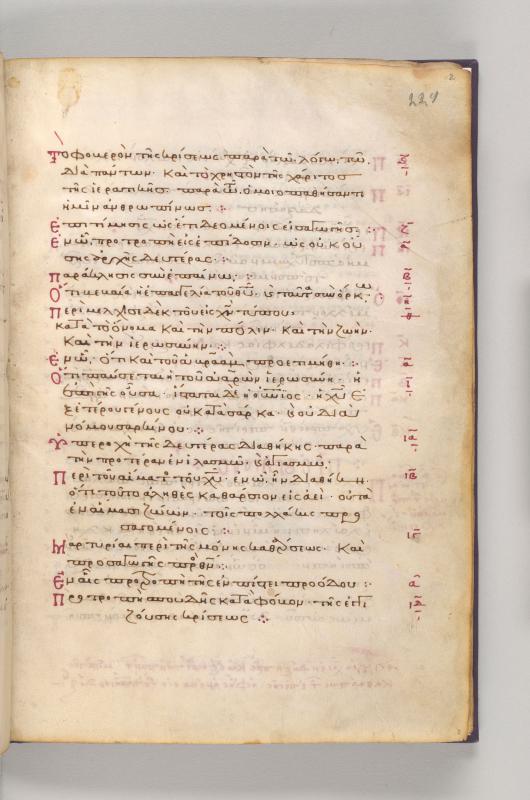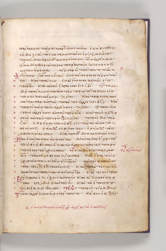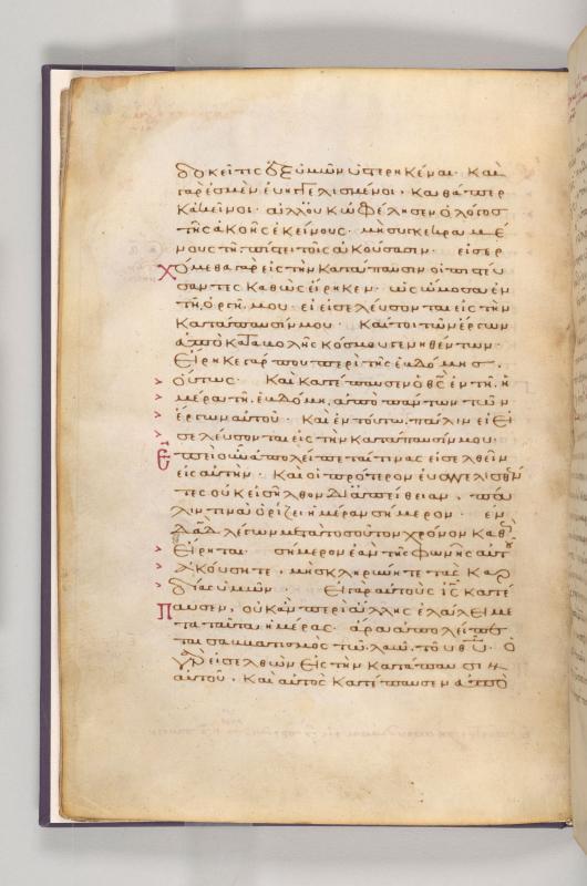 New Testament fragment (Hebrews and Revelation), in Greek; Greece, twelfth century, with slight calligraphic ornamentation in red and black (fols. 1, 19, 19v).  Gift of Herman C. Hoskier, 1926.