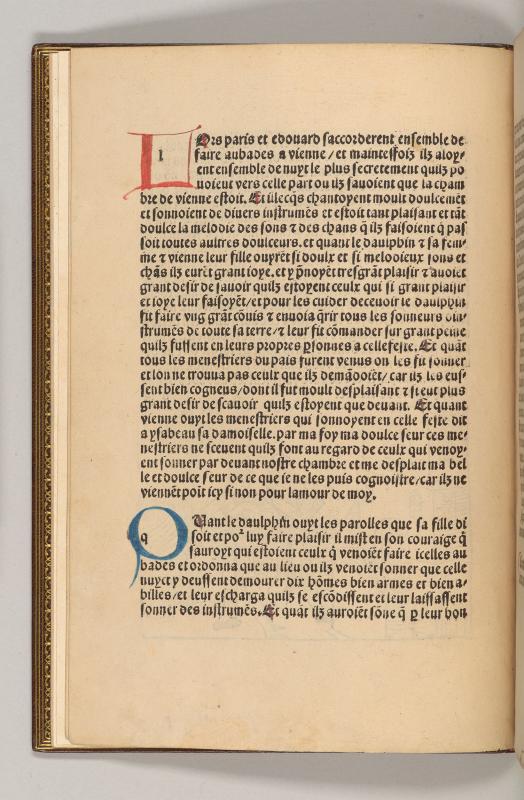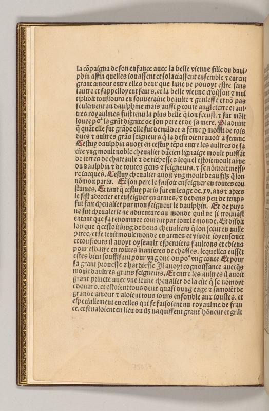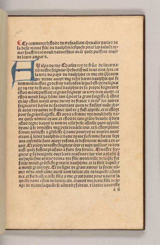 Cy commence lystoire du tres vaillant chevalier Paris [et] de la belle Vienne fille du daulphin lesquelz pour layaulme[n]t aymer souffrirent moult dadversites aua[n]t quilz puissent iouyr de leurs amours. [Lyon] : [Mathias Huss], [approximately 1485-1486] PML 75837