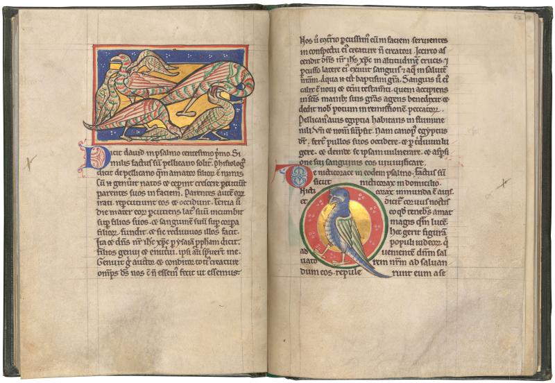 The night raven shown here betrays the bestiary’s anti-Semitism when it equates the bird with Jews who reject the light of Christ—though it also connects the bird to Christ, who wants to redeem sinners associated with darkness.