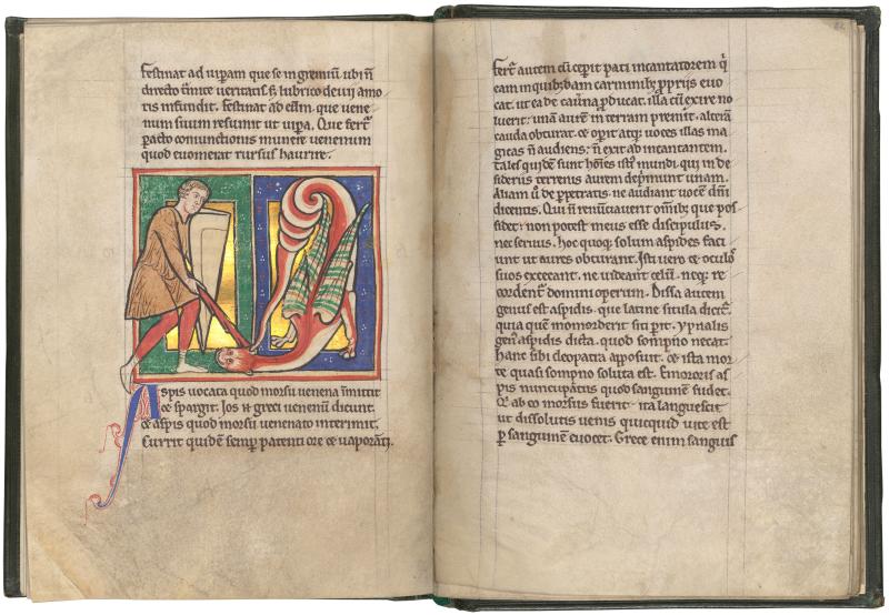 The venomous asp presses one ear to the ground and plugs its other ear with its tail to resist the deadly allure of the snake charmer.