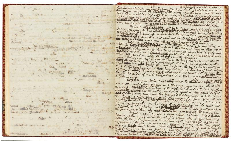 The Spirit did not tarry here, but bade Scrooge hold his robe, and passing on above the moor, sped whither?—Not to sea? To sea. To Scrooge's horror, looking back he saw the last of the land—a frightful range of rocks—behind them; and his ears were deafened by the thundering of water, as it rolled and roared and raged among the dreadful caverns it had worn, and fiercely tried to undermine the Earth.