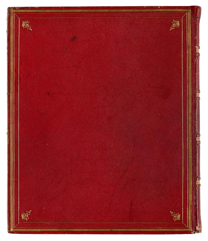 When the manuscript of A Christmas Carol was returned by the printer, Dickens sent it to a bookbinder (possibly Thomas Robert Eeles of Cursitor Street, London), who bound it in crimson morocco, a handsome, durable goatskin leather. The binding is elegantly decorated in gilt, and the name "Thomas Mitton Esqre" is stamped in gilt on the front cover. Dickens presented the bound manuscript to Mitton, his close friend and creditor, possibly as a Christmas gift, and most probably in gratitude for the generous loan of £270 in the preceding six months.