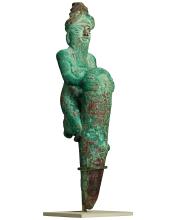 Copper Foundation Figure with a Kneeling God Holding a Peg