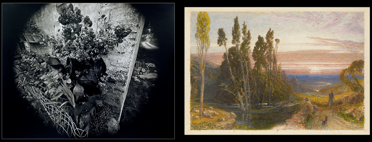 Right: Samuel Palmer (British, 1805-1881), The End of the Day: A Recollection of Italy, early 1870s. Watercolor, gouache, touches of gum Arabic, and traces of graphite. Purchased on the Sunny Crawford Von Bülow Fund, 1978, 2009.393