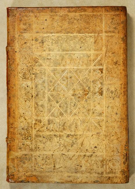 Contemporary blind-stamped pigskin over wooden boards (31 x 21.5 cm.), sewn on 2 supports by SS. Ulrich and Afra, Augsburg (EBDB w000114/Kyriss 2); repaired by Duprez Lahey. Contemporary paper pastedowns. 1 clasp, wanting.