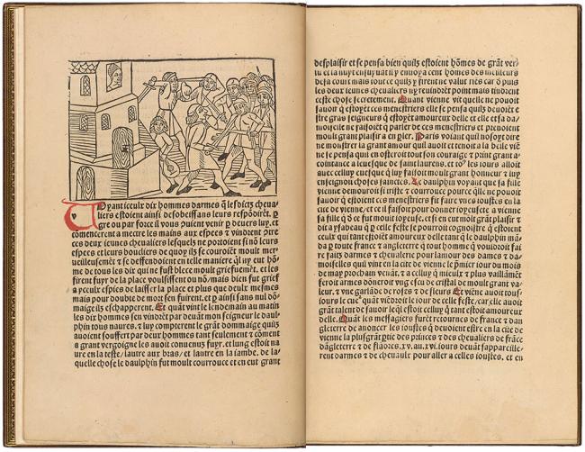 Cy commence lystoire du tres vaillant chevalier Paris [et] de la belle Vienne fille du daulphin lesquelz pour layaulme[n]t aymer souffrirent moult dadversites aua[n]t quilz puissent iouyr de leurs amours.