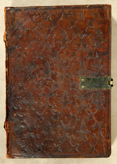 15th-century blind-tooled calf over wooden boards (22 x 15 cm), sewn on 2 supports, probably bound in Augsburg, with tools similar to those assigned to Paulus Wolf of the Sechsblatt-Blüte workshop, also know as Uffenheim Hauptwerkstatt in Augsburg (EBDB w000959/Kyriss 78, active about 1473-1501); with repairs to top and bottom of spine. Plain paper pastedowns, the rear pastedown is printer's waste with a blind impression of the 3 Mary's at the Empty Tomb woodcut (Schramm, IV, 568). 1 clasp.