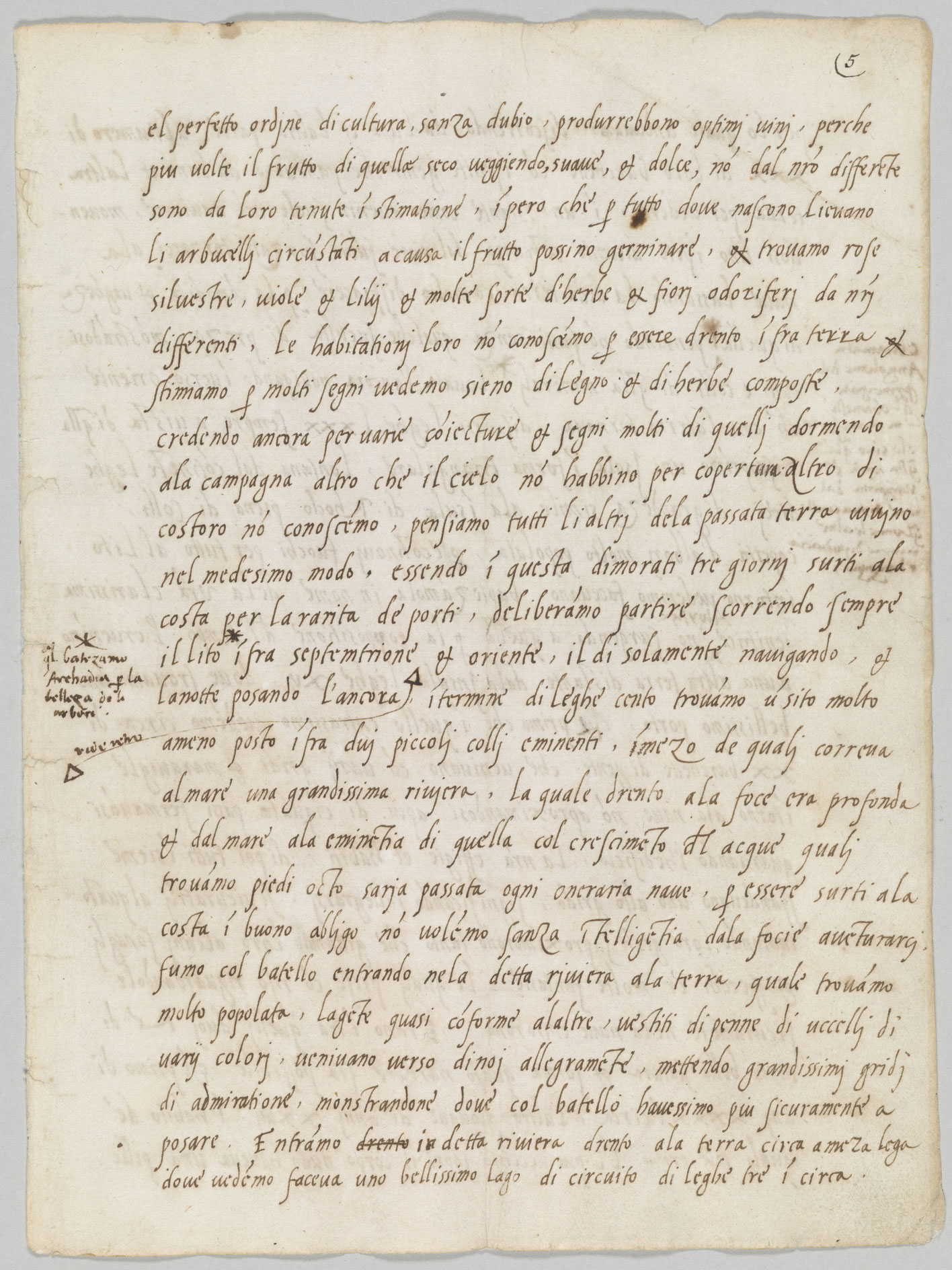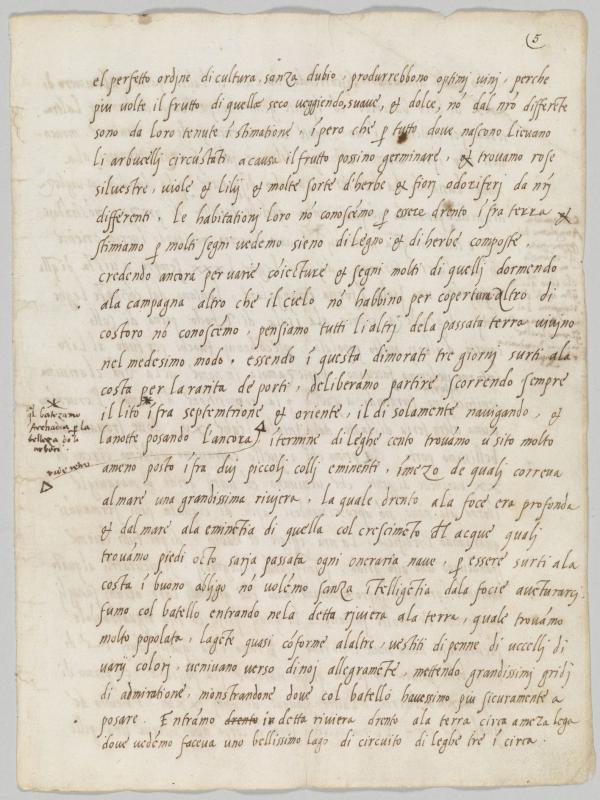 Bacchiani believes that it is in the hand of Girolamo, with marginal notes by Giovanni Verrazzano himself.