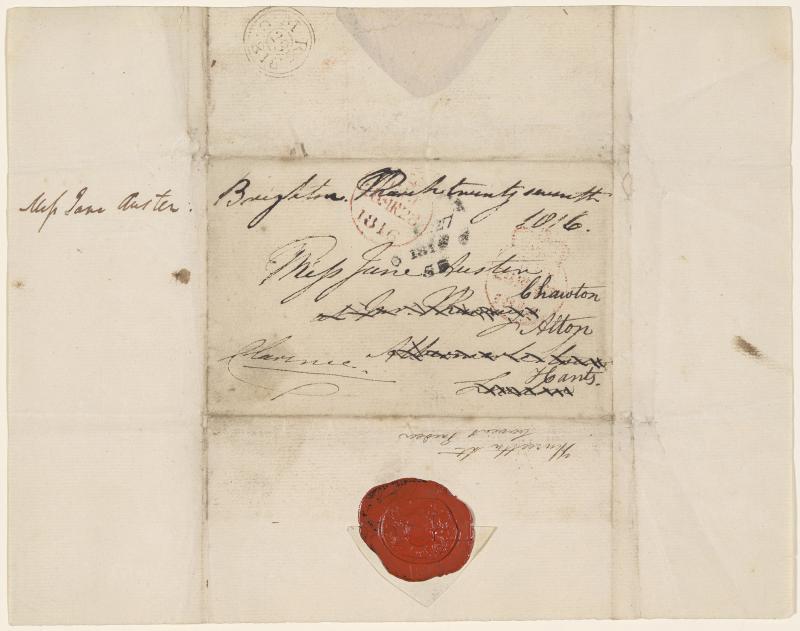 With postmark and red wax seal of the Royal Arms, and addressed to "Miss Jane Austen / at Mr. Murrays".