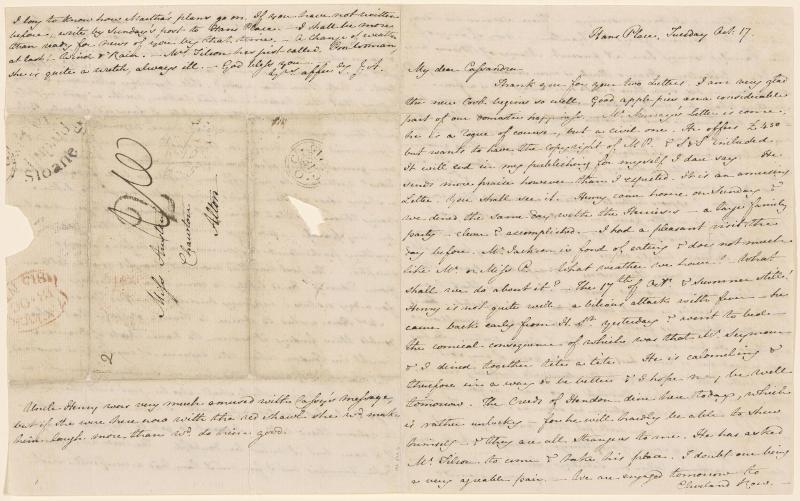 Part of a collection of 8 autograph letters from Jane Austen, 2 autograph letters from Cassandra Austen, a memorandum of accounts in Jane Austen's hand, and a memorandum in Cassandra's hand concerning the dates of composition of Jane Austen's novels. Items in the collection are described in 12 individual records (MA 2911.1-12).