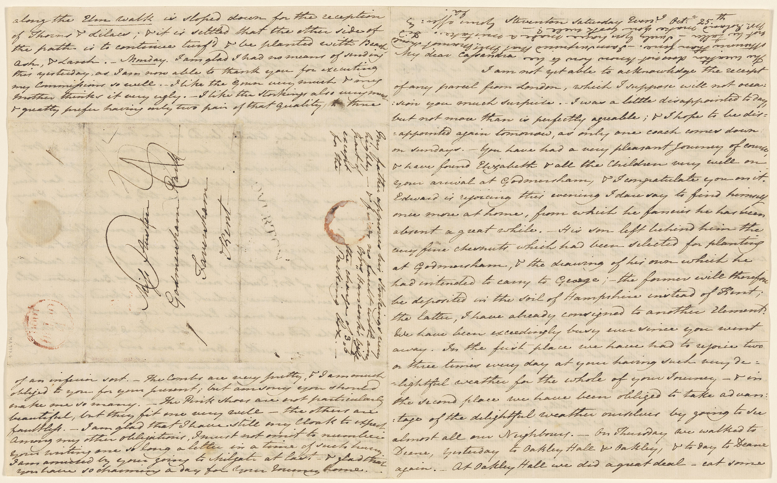 With postmark and red wafer, addressed to Miss Austen, Godmersham Park, Faversham, Kent.
