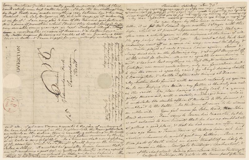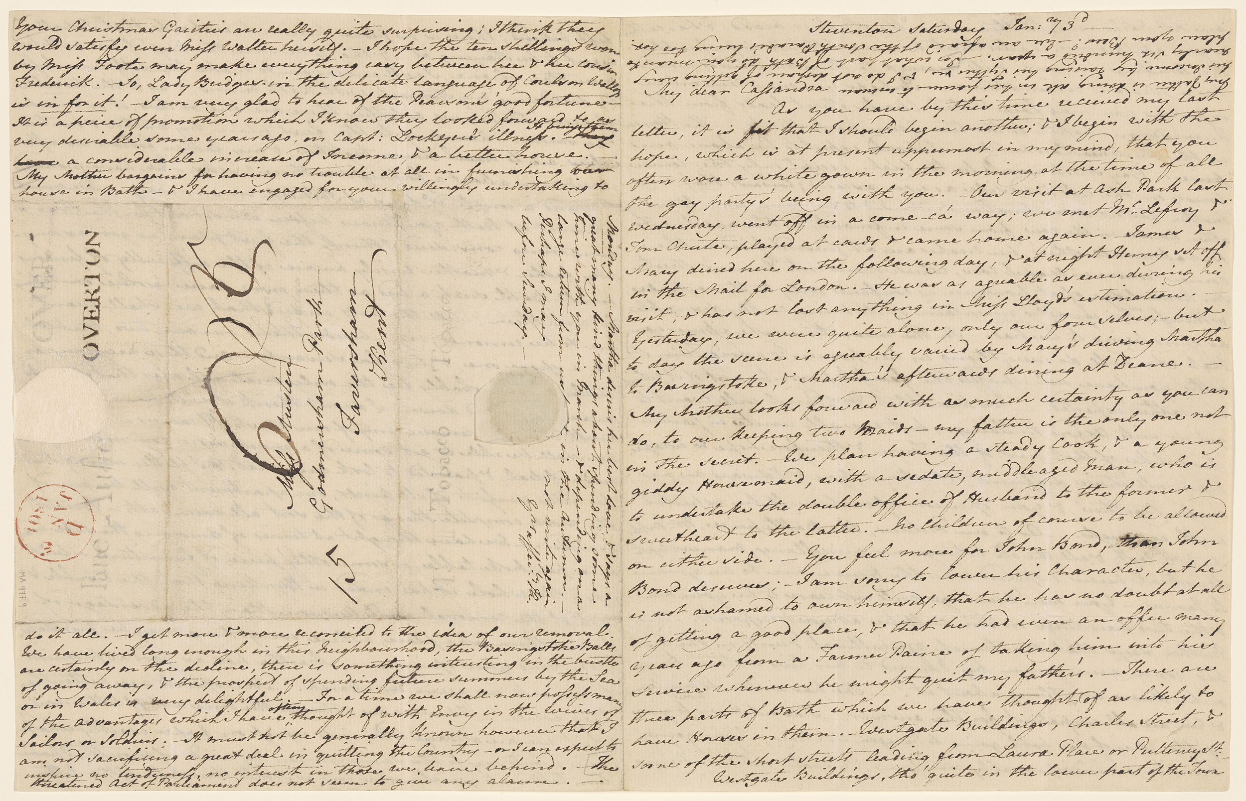 With postmark, addressed to Miss Austen, Godmersham Park, Faversham, Kent; seal cut out.