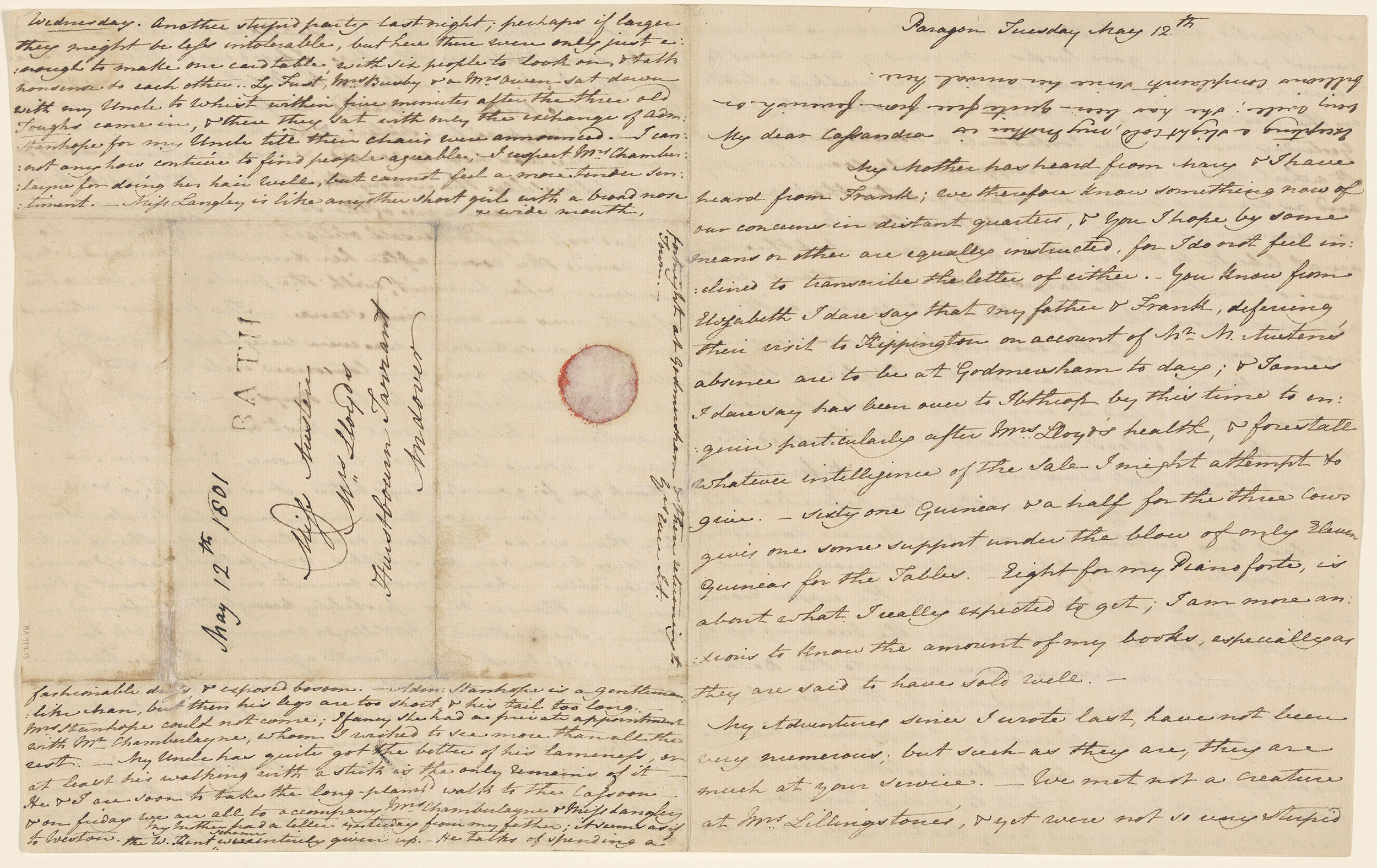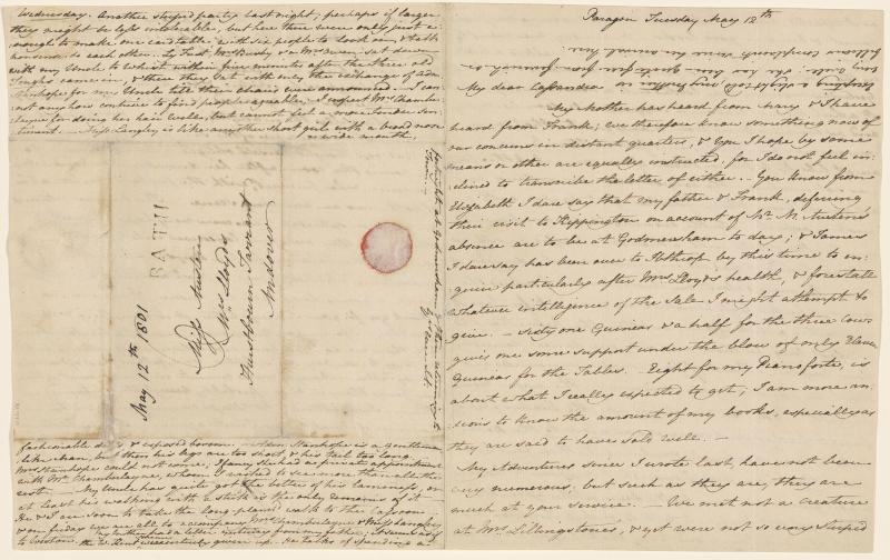 With postmark and remnant of red wafer, addressed to Miss Austen, Mrs. Lloyd, Hurstbourn Tarrant, Andover; written from "Paragon."