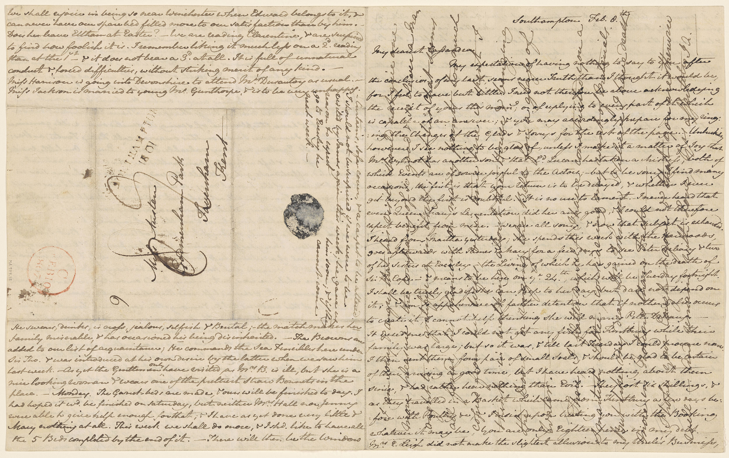 With postmark and remnant of seal, addressed to Miss Austen, Godmersham Park, Faversham, Kent.