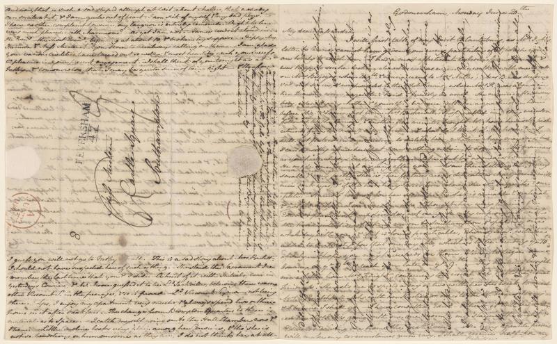 With postmark and wafer impression, addressed to Miss Austen, Castle Square, Southampton.