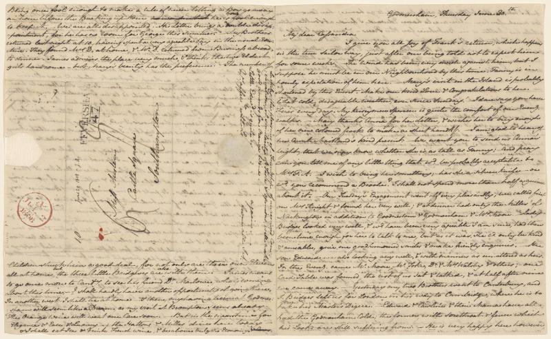 With postmark and wafer, addressed to Miss Austen, Castle Square, Southampton.
