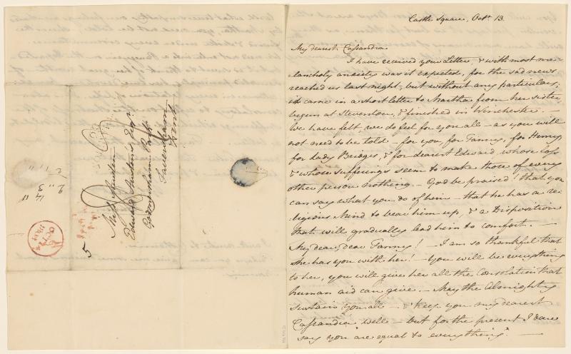 With postmark and remnant of blue wafer, addressed to Miss Austen, Edward Austen's Esqr., Godmersham Park, Faversham, Kent; written from Castle Square.