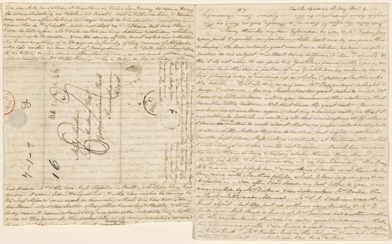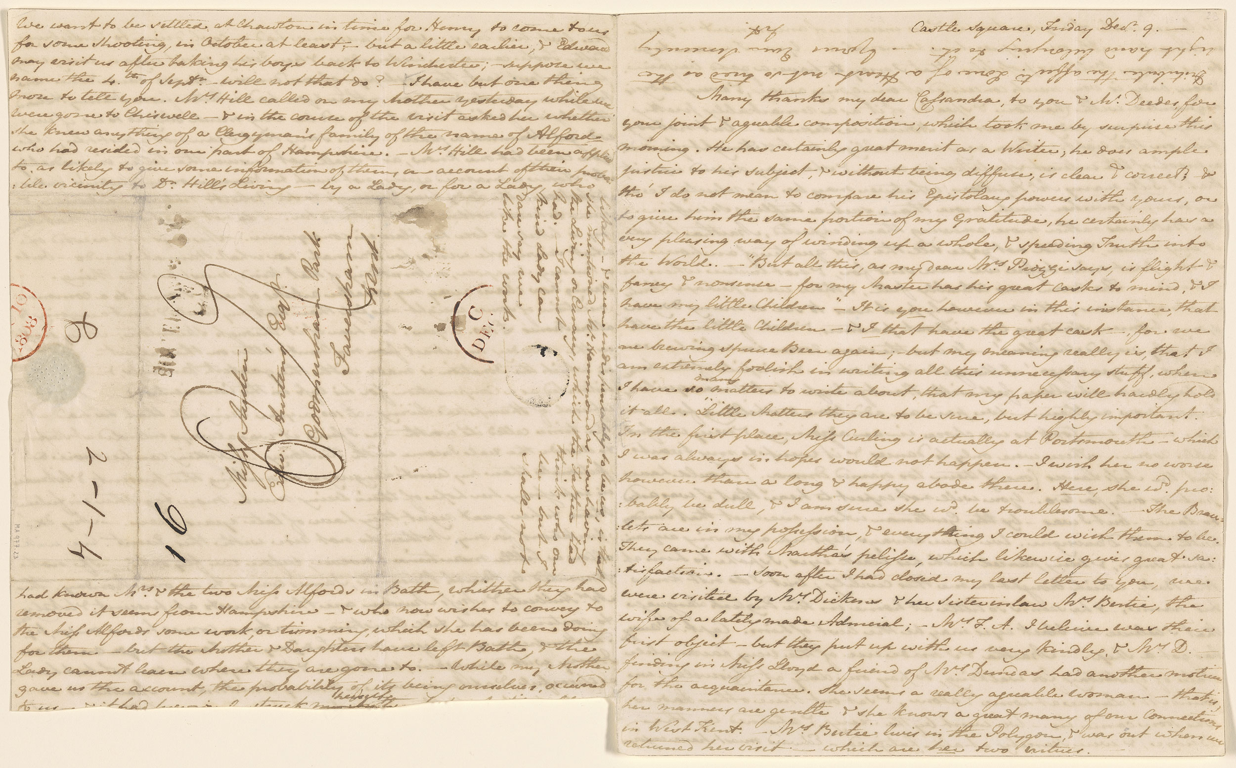 With postmark and black wafer, addressed to Miss Austen, Edward Austen's Esqr, Godmersham Park, Faversham, Kent; written from Castle Square.