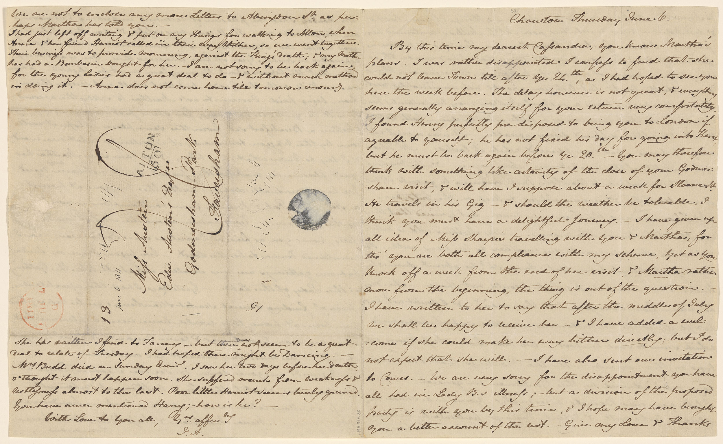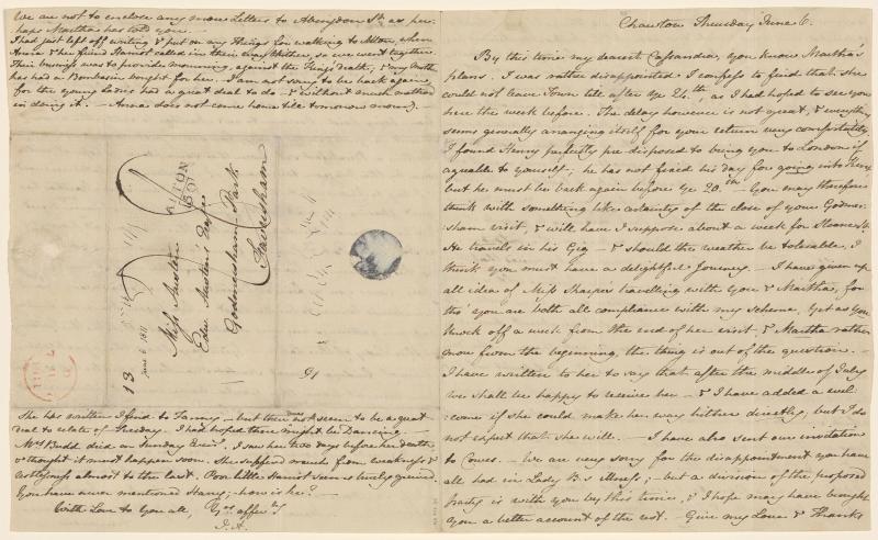 With postmark and seal, addressed to Miss Austen, Edw Austen's Esqr, Godmersham Park, Faversham.