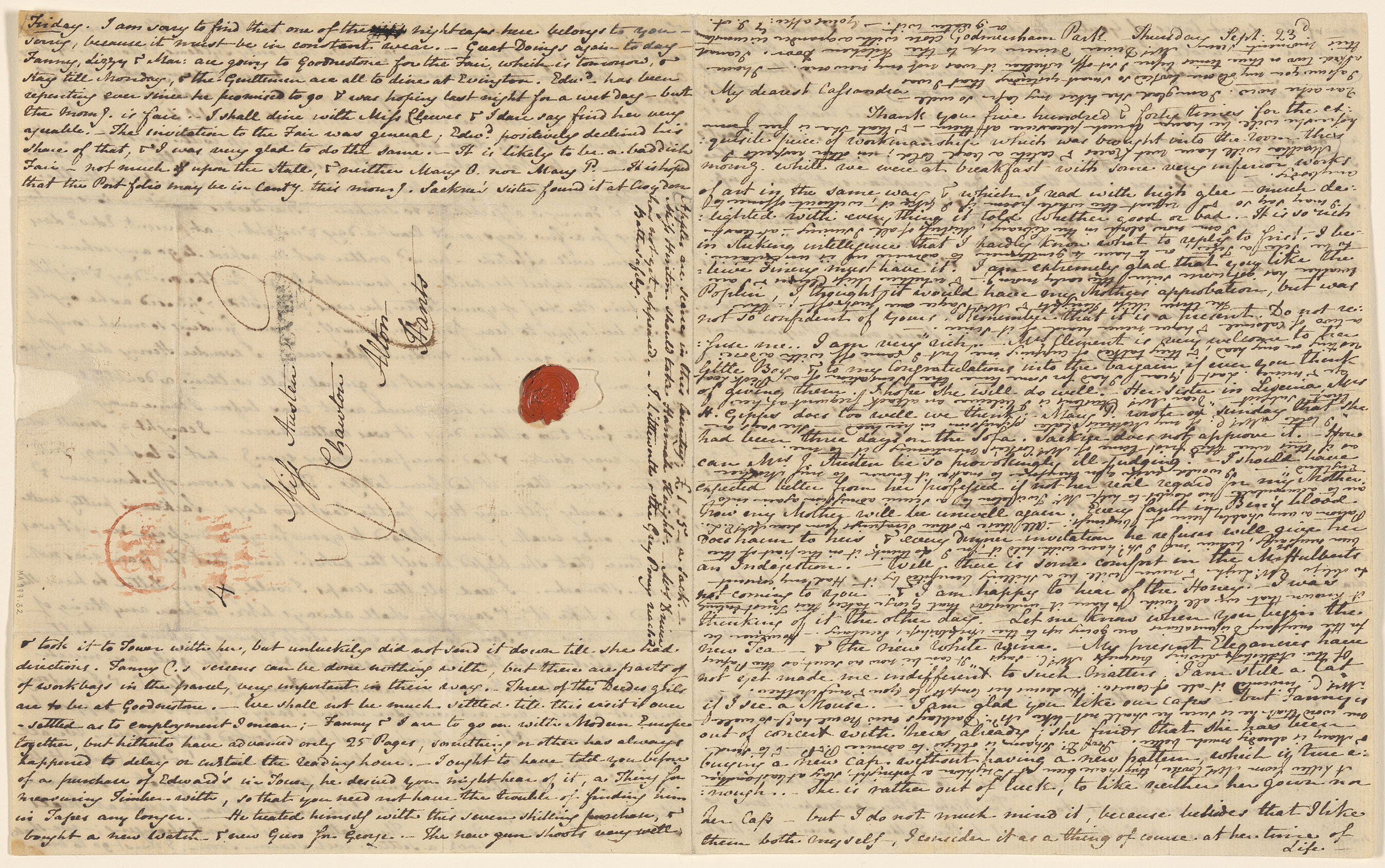 With postmark and red wax seal, addressed to Miss Austen, Chawton, Alton, Hants [Hampshire].