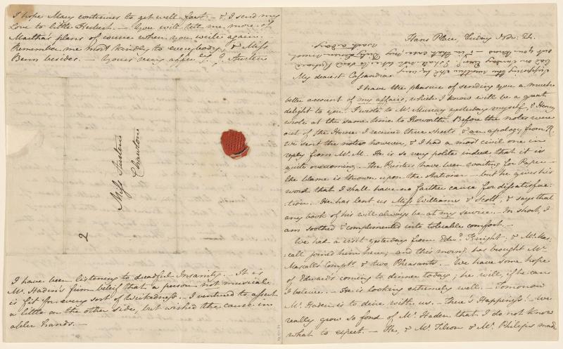 Forms part of a collection of 41 letters from Austen to her sister and two prints (MA 977.1-43).