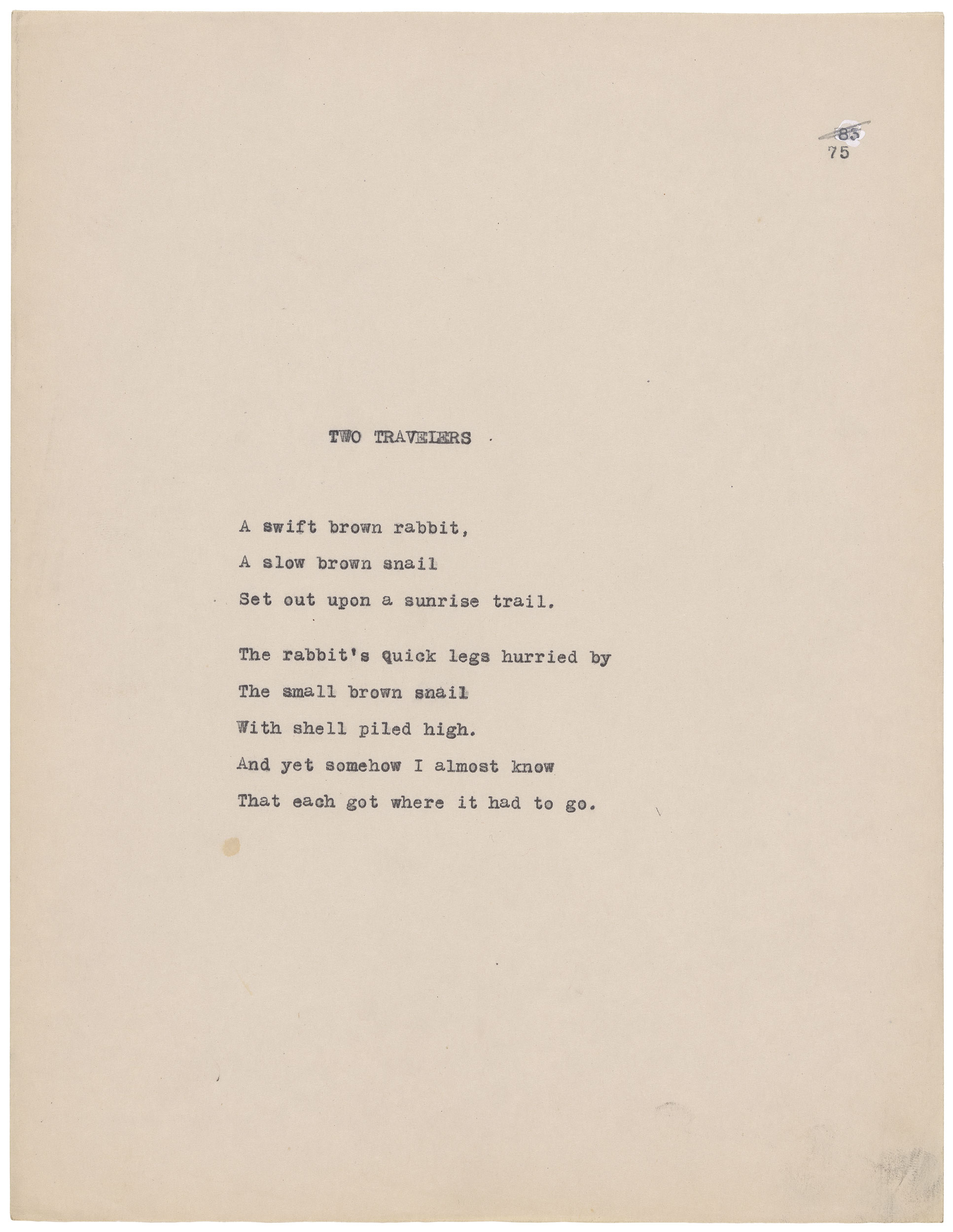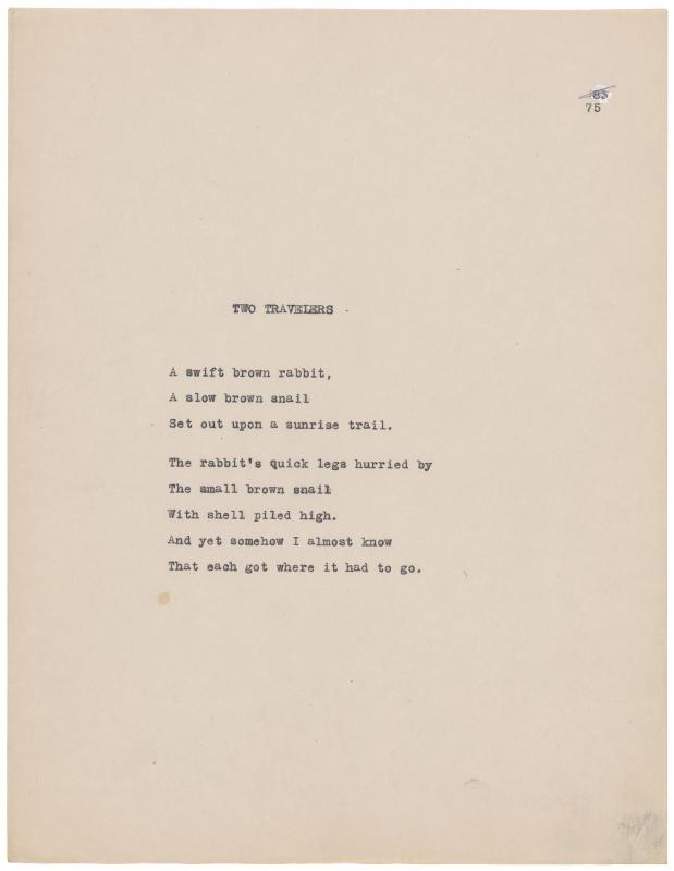 Unpublished collection of children's poetry by the Black American poet Effie Lee Newsome, evidently intended for publication by Carter G. Woodson's The Associated Publishers in Washington, D.C., with illustrations by African American artist James Lesesne Wells. The poems are organized into seven sections or chapters, entitled: The Child, Many Creatures, The Trees, Insect Folk, The Birds, Flowers, and God's Sky.