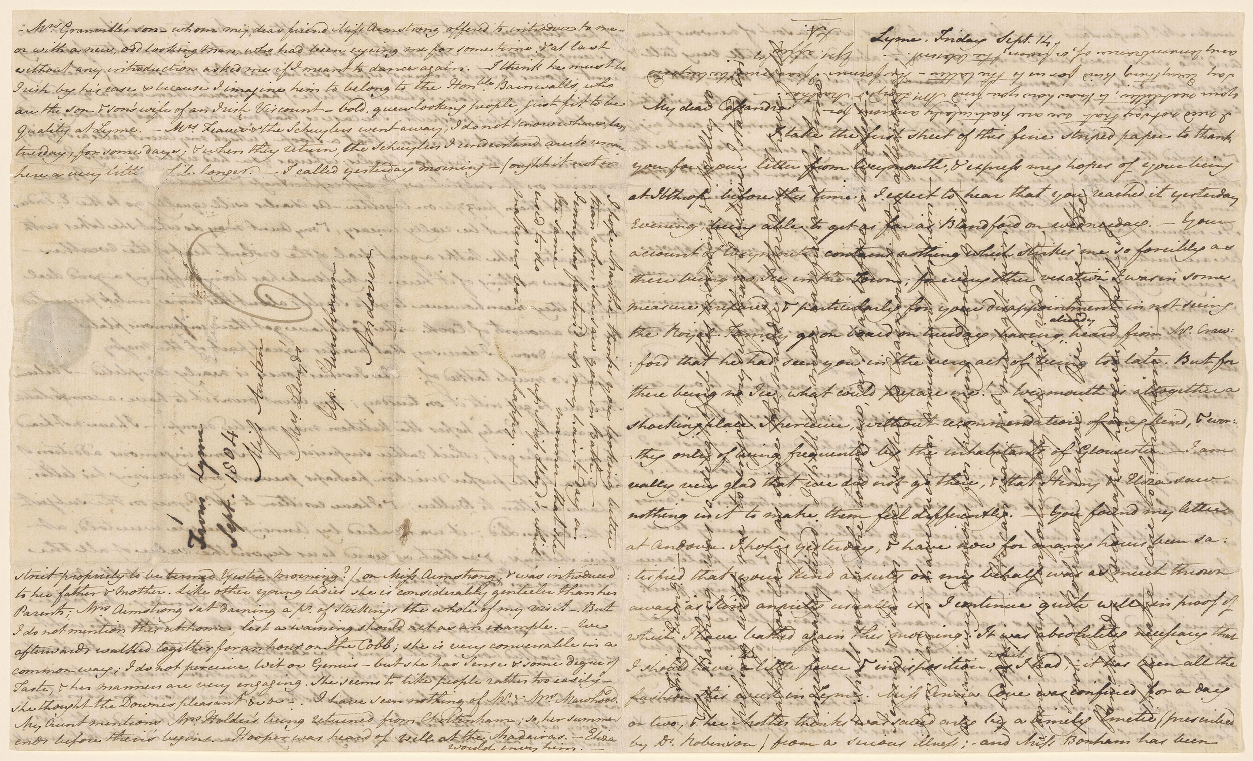 With mark of seal or wafer, addressed to "Miss Austen / Mrs. Lloyd's / Up. Hurstbourn / Andover."