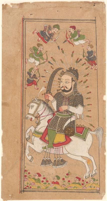 A warrior pierced with arrows, from an abridgement of Firdausī's Shāhnāma.