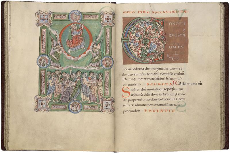 Ms. sacramentary, for the Roman rite in a Benedictine monastery; written and illuminated at Mont-Saint-Michel Abbey, in Normandy, ca. 1060.