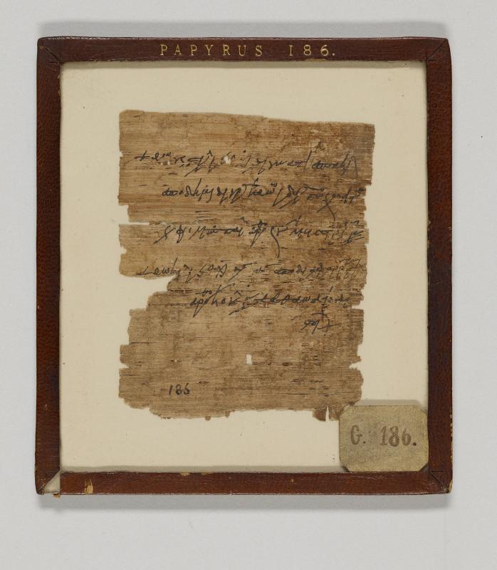 1 pane of glass containing 1 papyrus fragment ; 4 x 3 1/2 inches