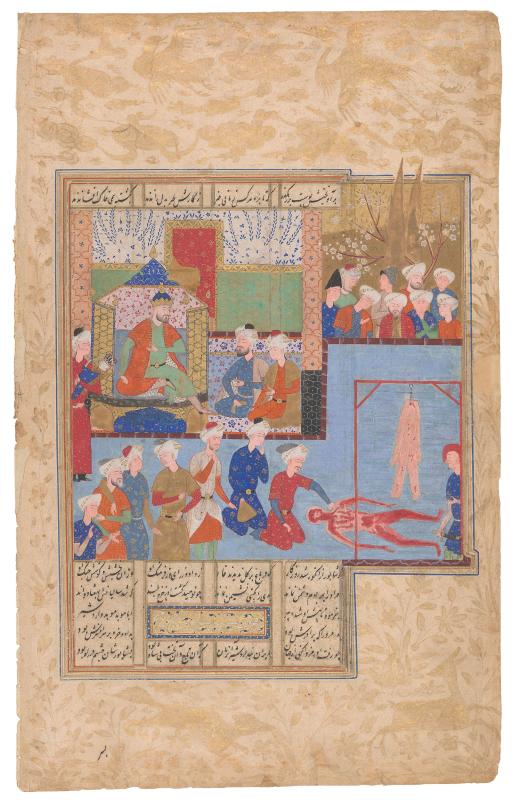 King Shapur Observing Mani's Flayed Body (leaf from a Shāhnāmah).