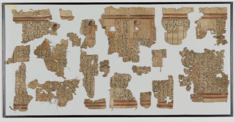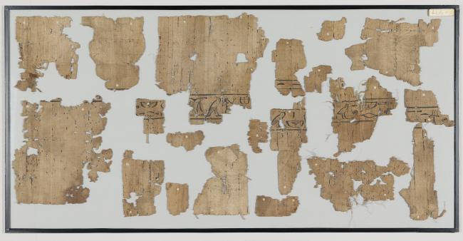 1 pane of glass containing 18 papyrus fragments ; pane: 16 x 32 in.; 12 x 18 in.