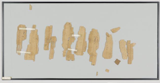 1 pane of glass containing 1 papyrus fragment ; 8 x 24 inches