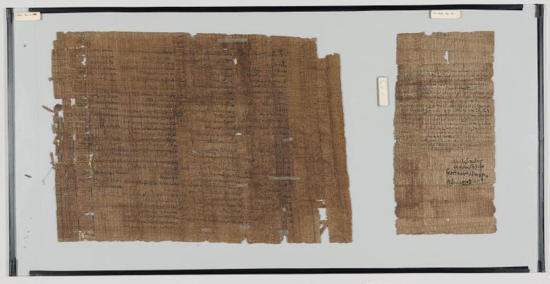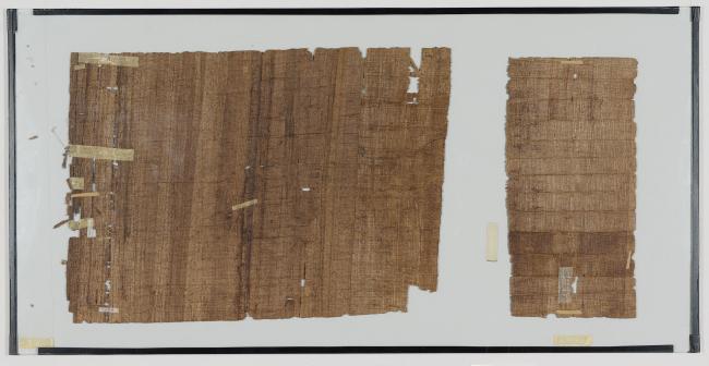 1 pane of glass containing 2 papyrus fragments ; 12 1/2 x 17 1/2 in.; 12 x 6 in.