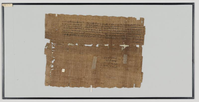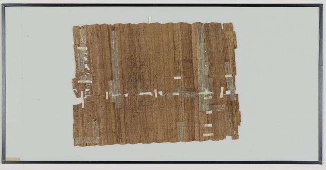1 pane of glass containing 1 papyrus fragment ; 12 x 17 inches